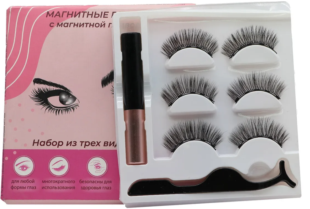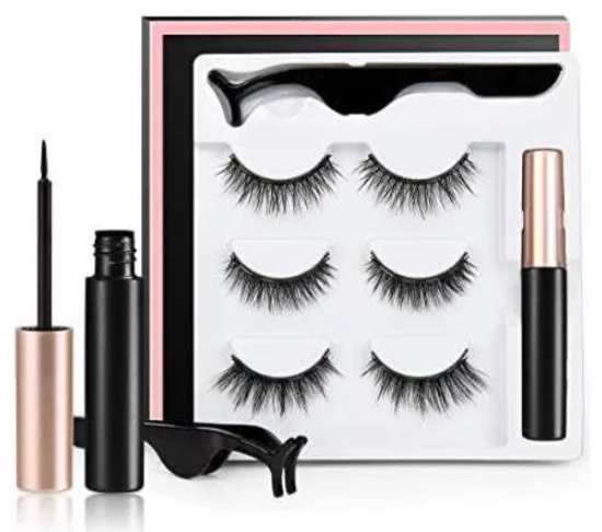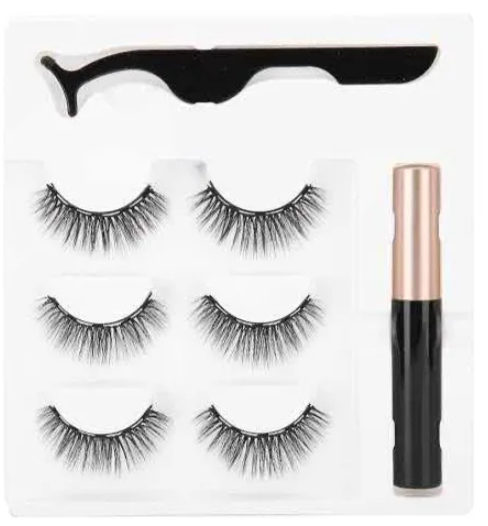 KIT DE PESTAÑAS MAGNÉTICAS Y DELINEADOR DE OJOS: 1 tubos de delineador especial que contienen partículas magnéticas ultrafinas que permiten que la pestaña magnética se conecte fácilmente, 3 pares de hermosas pestañas y un aplicador de pinzas gratis.
