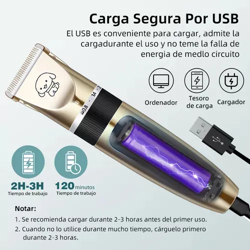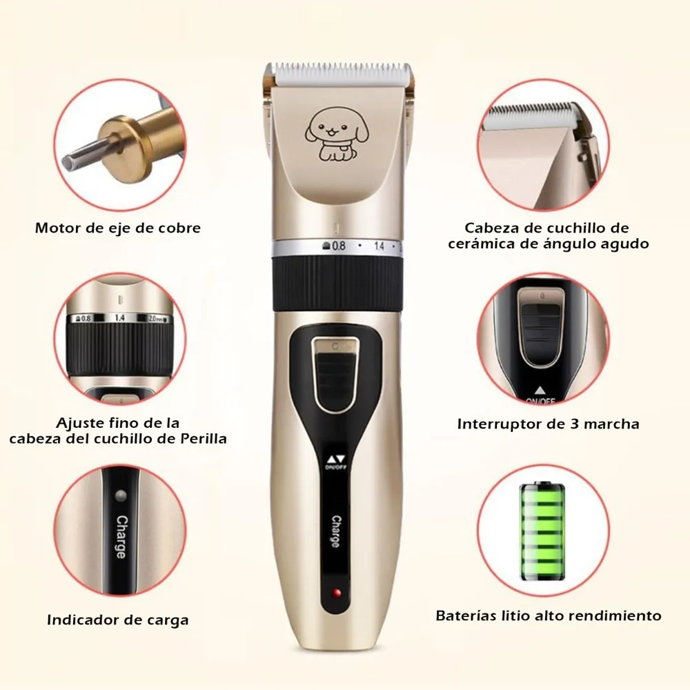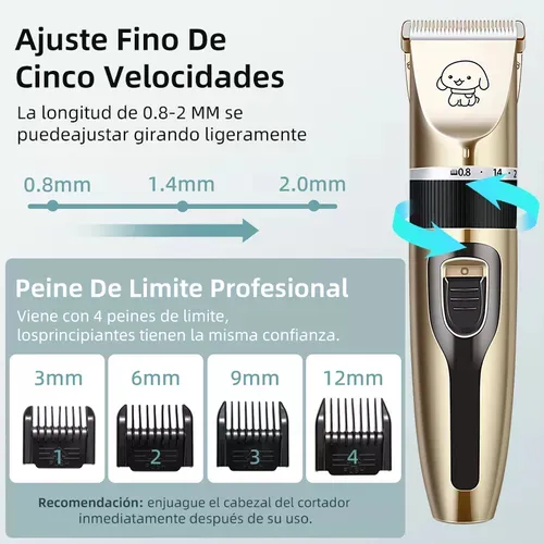 El producto viene con 4 accesorios de peine (3 mm, 6 mm, 9 mm, 12 mm) que le permiten cortar el pelo de su mascota a su gusto. Además, el producto viene con 1 peine y 1 tijera (ambos de acero inoxidable), 1 cepillo de limpieza, 1 cable USB, 1 cortaúñas y 1 lima de uñas, lo que facilita y hace más seguro el manejo de la máquina incluso para los nuevos usuarios, por lo que es ideal para cortar el pelo de su mascota.